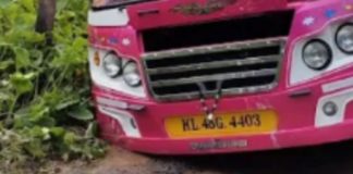 പുതിയ ബസ്റ്റാൻഡ് റോഡിലെ കുഴിയിൽ താഴ്ന്ന് ബസ് ചരിഞ്ഞു..