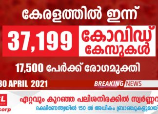 കേരളത്തില് ഇന്ന് 37,199 പേര്ക്ക് കോവിഡ്-19 സ്ഥിരീകരിച്ചു…