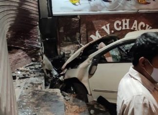 ജ്വല്ലറിയിലേക്ക് കാർ പാഞ്ഞ് കയറി: സെക്യൂരിറ്റി ജീവനക്കാരന് ഗുരുതര പരിക്ക്!