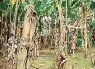 സാമൂഹ്യ ദ്രോഹികൾ വാഴക്കുലകൾ വെട്ടി കൊണ്ടു പോയി..