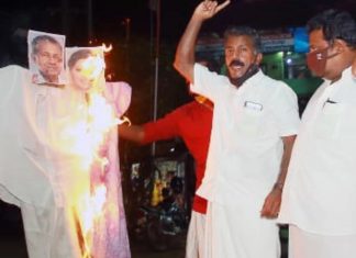 മുഖ്യമന്ത്രിയുടെ കോലം കത്തിച്ചു യൂത്ത് കോൺഗ്രസ്..